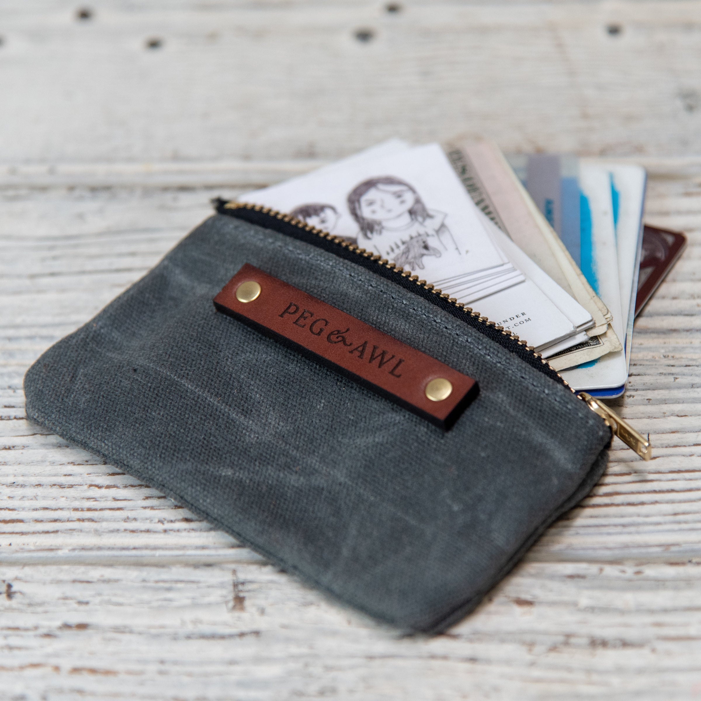 Features: 15 oz. waxed duck canvas (19 oz. with wax); Black YKK zipper with brass teeth; Brand from vegetable-tanned leather; Brass rivets. Measures 3″ H x 5″ W and made locally in Pennsylvania!