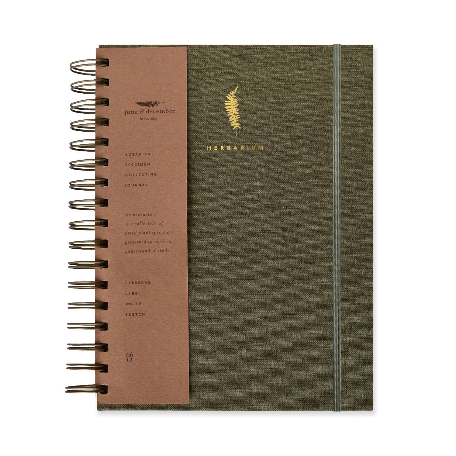 Inspired by Italian botanical garden herbariums, this linen-wrapped Herbarium Journal was designed to preserve personal collections of pressed specimens as a keepsake. This journal features an olive green linen cover with gold foil details, 60 pages of 100% post consumer waste - recycled card stock and a matching elastic band closure to keep specimens safe. At 6.5” W x 8.5” H, this journal is perfect to throw in your bag and spacious enough to collect multiple specimen samples!-