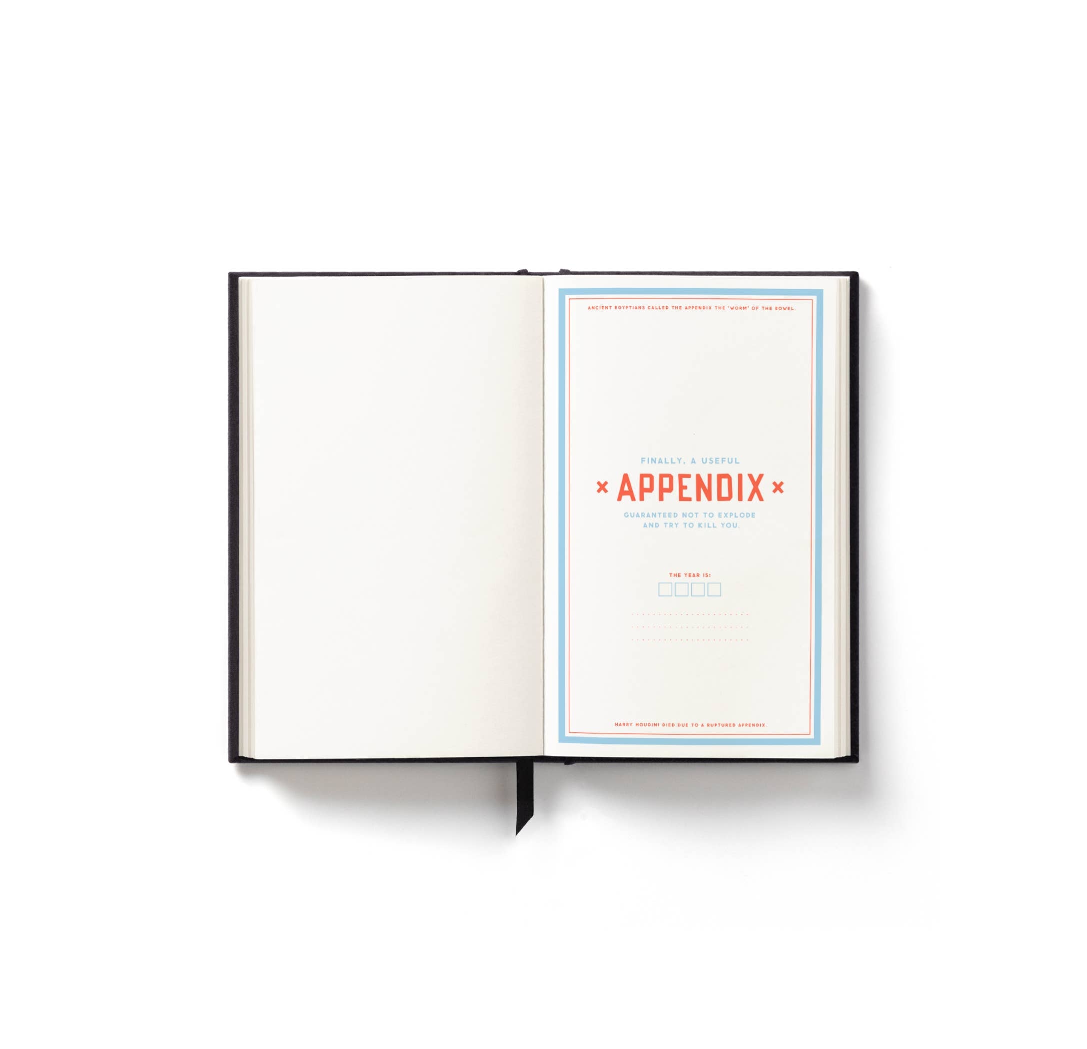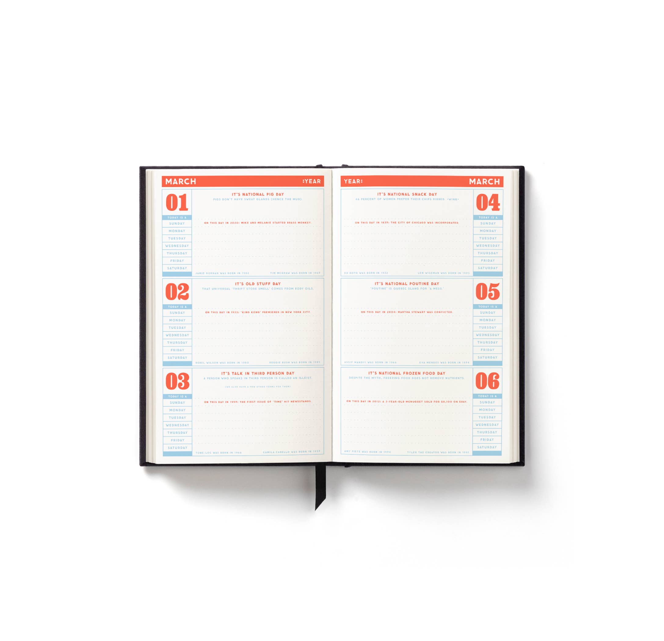 You could say that this cloth-bound mini daily planner by Brass Monkey is undated...but you'd really be selling it short. It's more like..."un-yeared." See, we did all of the hard work for you. We've already put in all of the dates, the fixed holidays, and tons of extra stuff like daily random holidays (it was Work Like A Dog Day when we wrote this, ironically), celebrity birthdays, and other bits of trivia. With knowledge like this, you'll be the life of the party that you probably didn't want to go to in the first place. All you have to do is fill in the year, and what day of the week each day is on. Simple. So if you want, you can buy this planner today and still procrastinate actually using it until 2054...live your life. • Inspired by vintage library books. You remember what those are, right? • Features a cloth bound cover with embossed "Hidden Agenda" artwork. • Filled with 366 days (208 pages) of random holidays, trivia, and humor.-