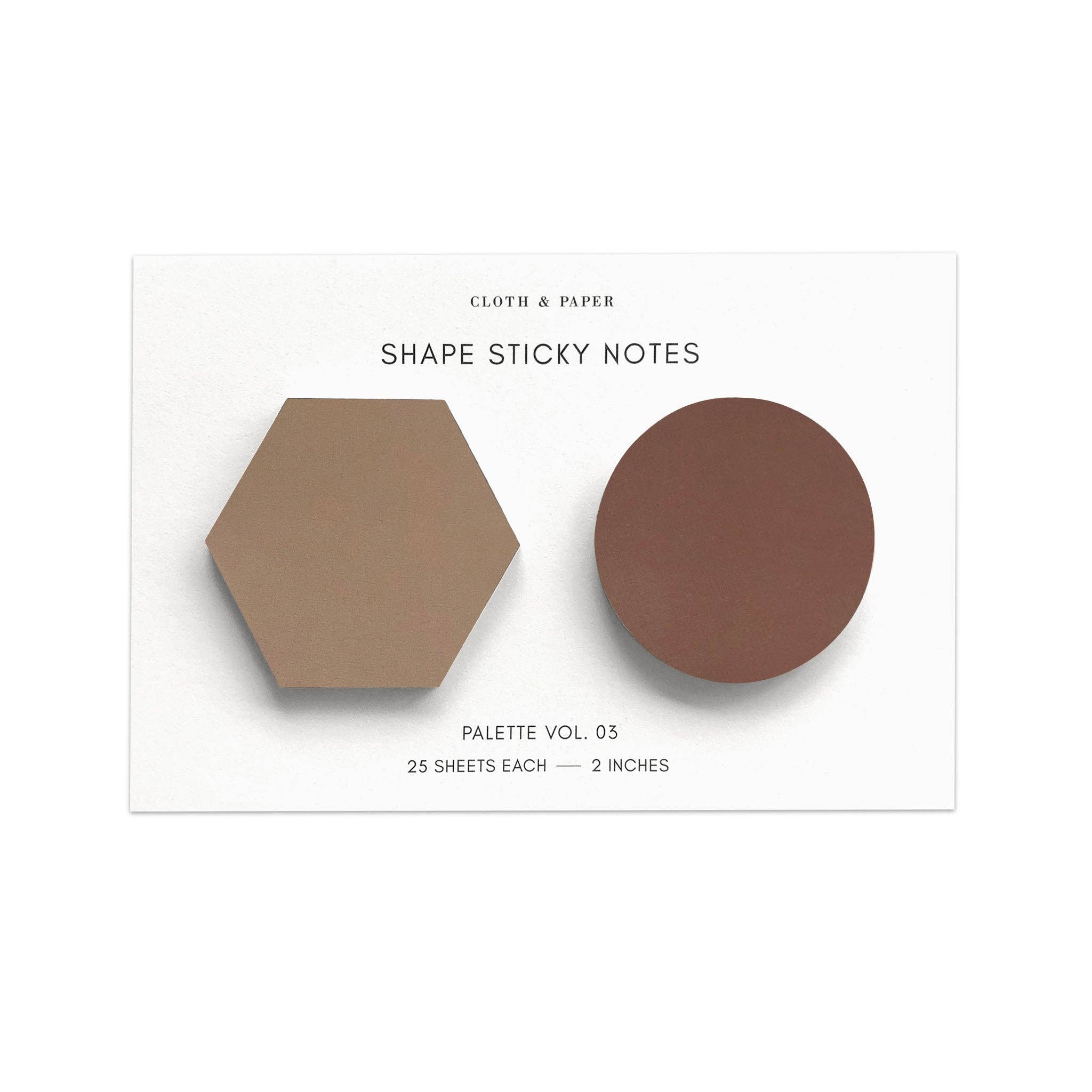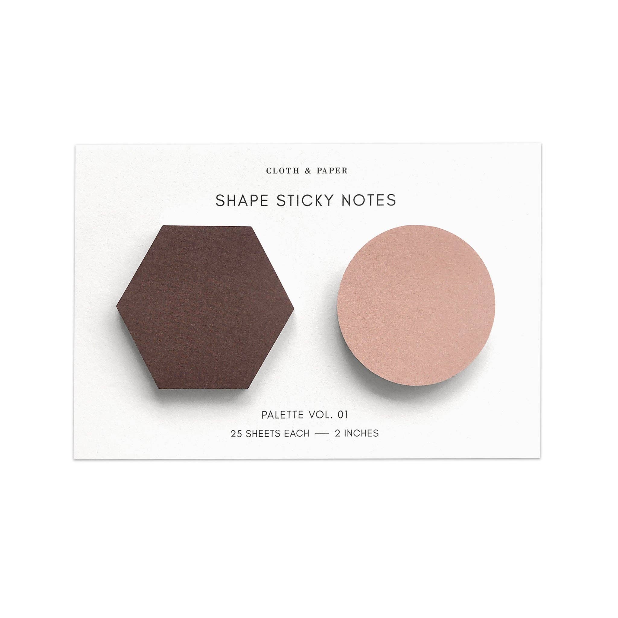Who said sticky notes could only be rectangular? Spice things up with our Shape Sticky Note set, featuring hexagon and circle shaped sticky notes in complimentary colors. Sticky Note Features: * Set of two sticky note pads * Includes 25 sheets of each shape * Hexagon sticky note measures 2.25 inches at widest point * Circle sticky note measures 2 inches in diameter * Self adhesive * Made from matte paper This item has a purchase limit of 5 per order. While we do our very best to ensure all Cloth & Paper product listing photos are color accurate, product colors may appear differently in real life. Due to variation in paper stock, ink style, and materials used, different products with the same color name are not guaranteed to be exact shade matches.-