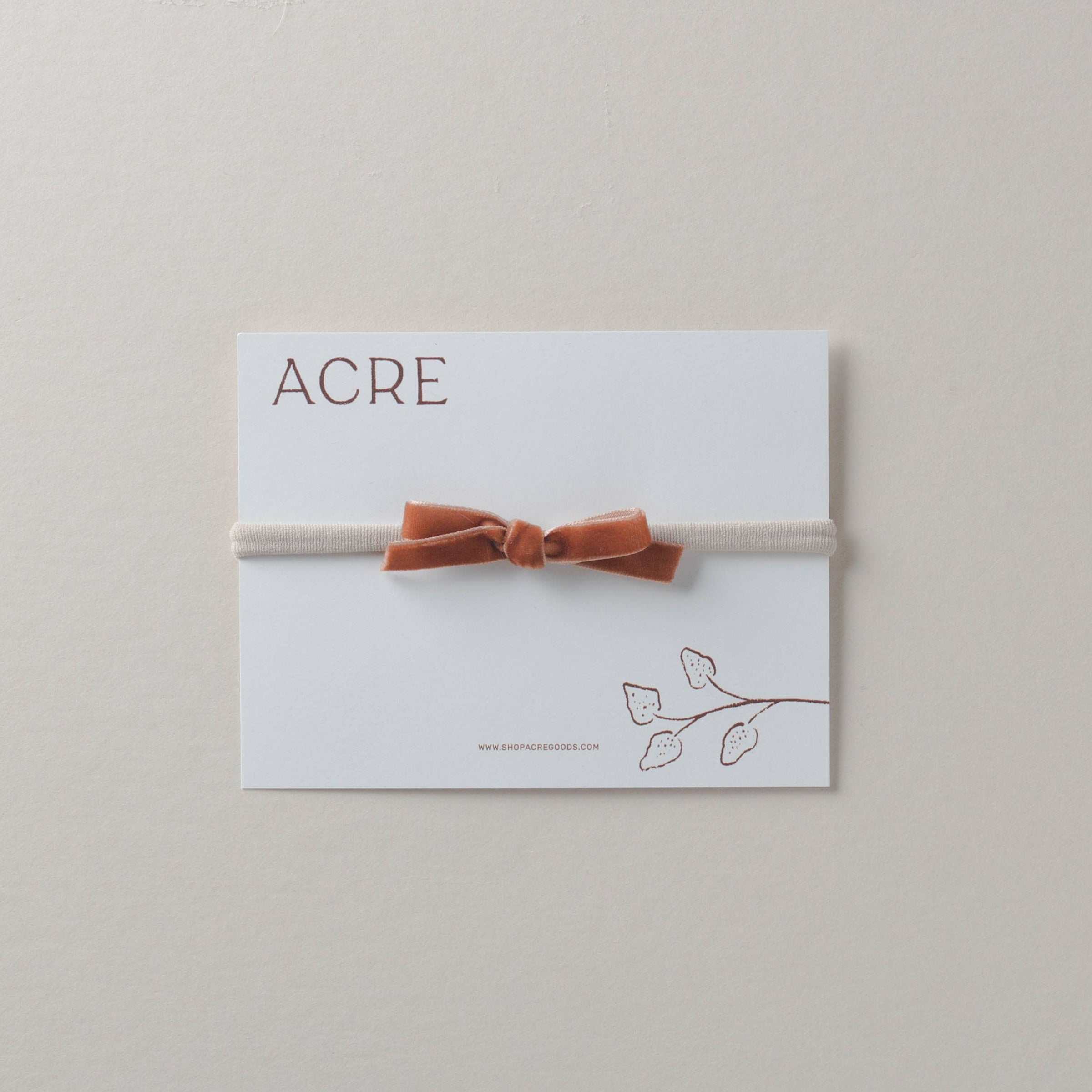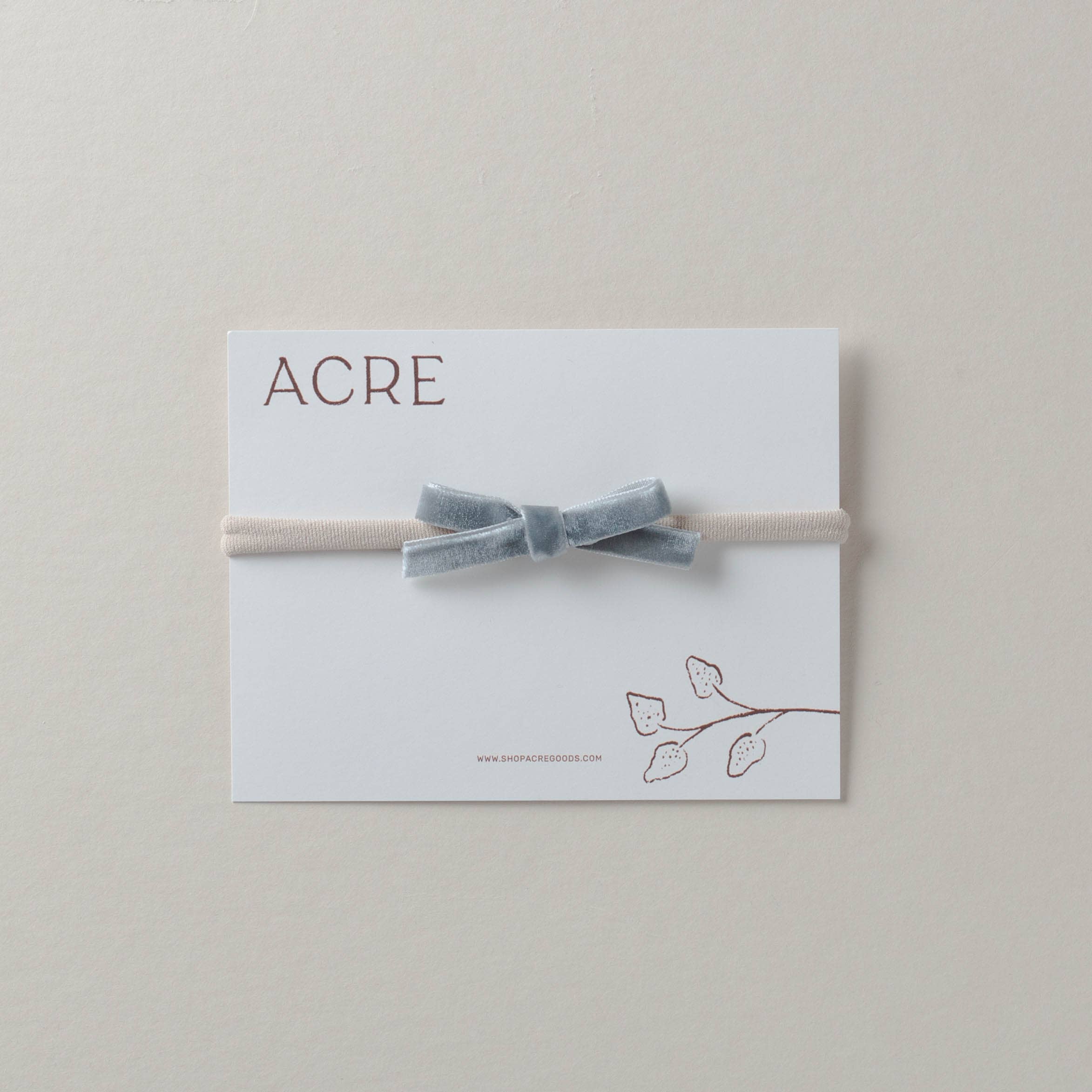 Velvet ribbon hand tied into a simple classic bow perfect for newborns up to 12 months. Bow is secured on a super soft and stretchy nylon headband.-