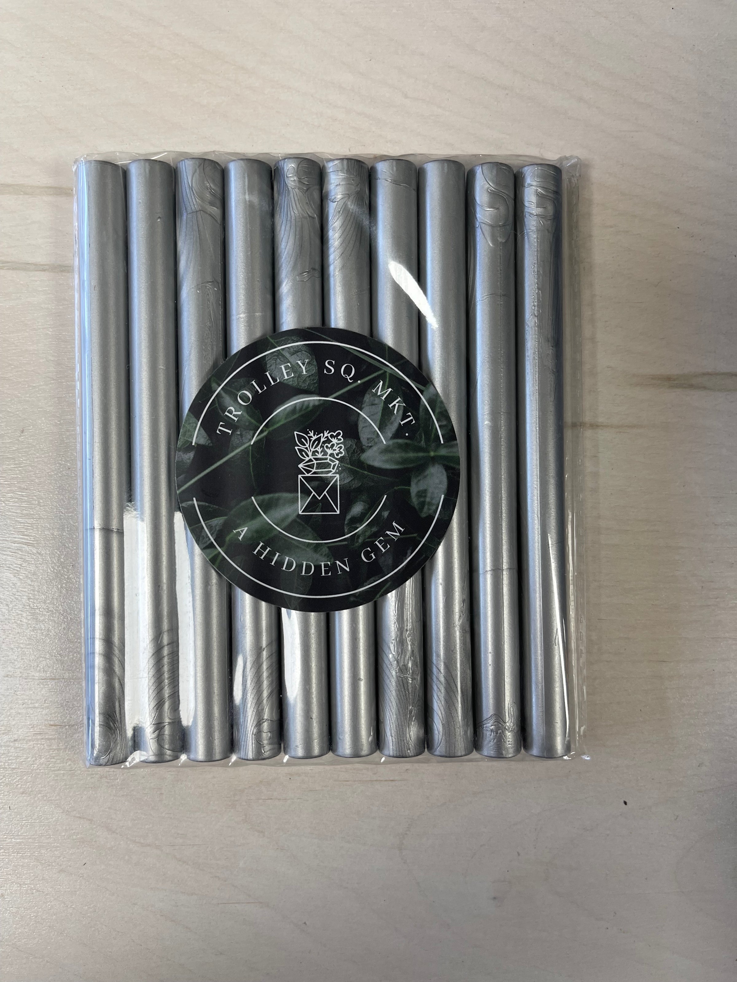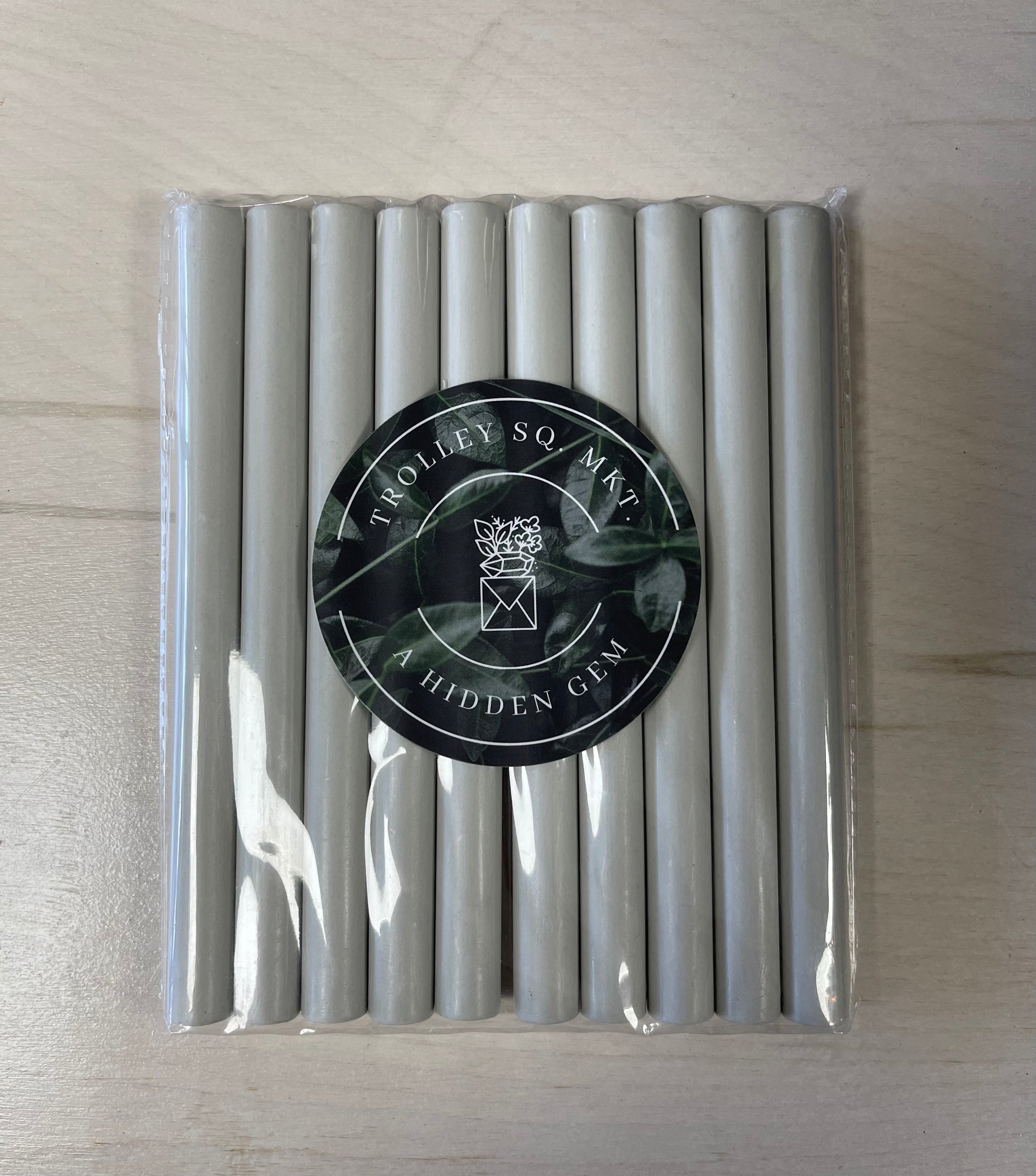Add a personal touch to your letters with this wickless sealing wax stick set! Break off pieces to melt or load them into a glue gun for use! Available in 9 different colors.-